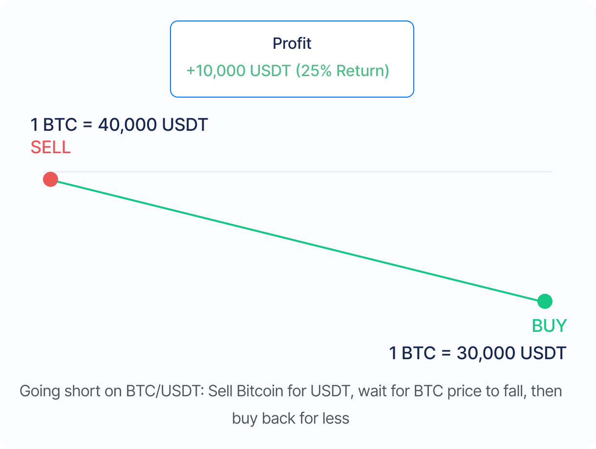 Sell high, buy back lower. The bot sells your crypto first, then buys it back cheaper — capturing profits even when prices drop.